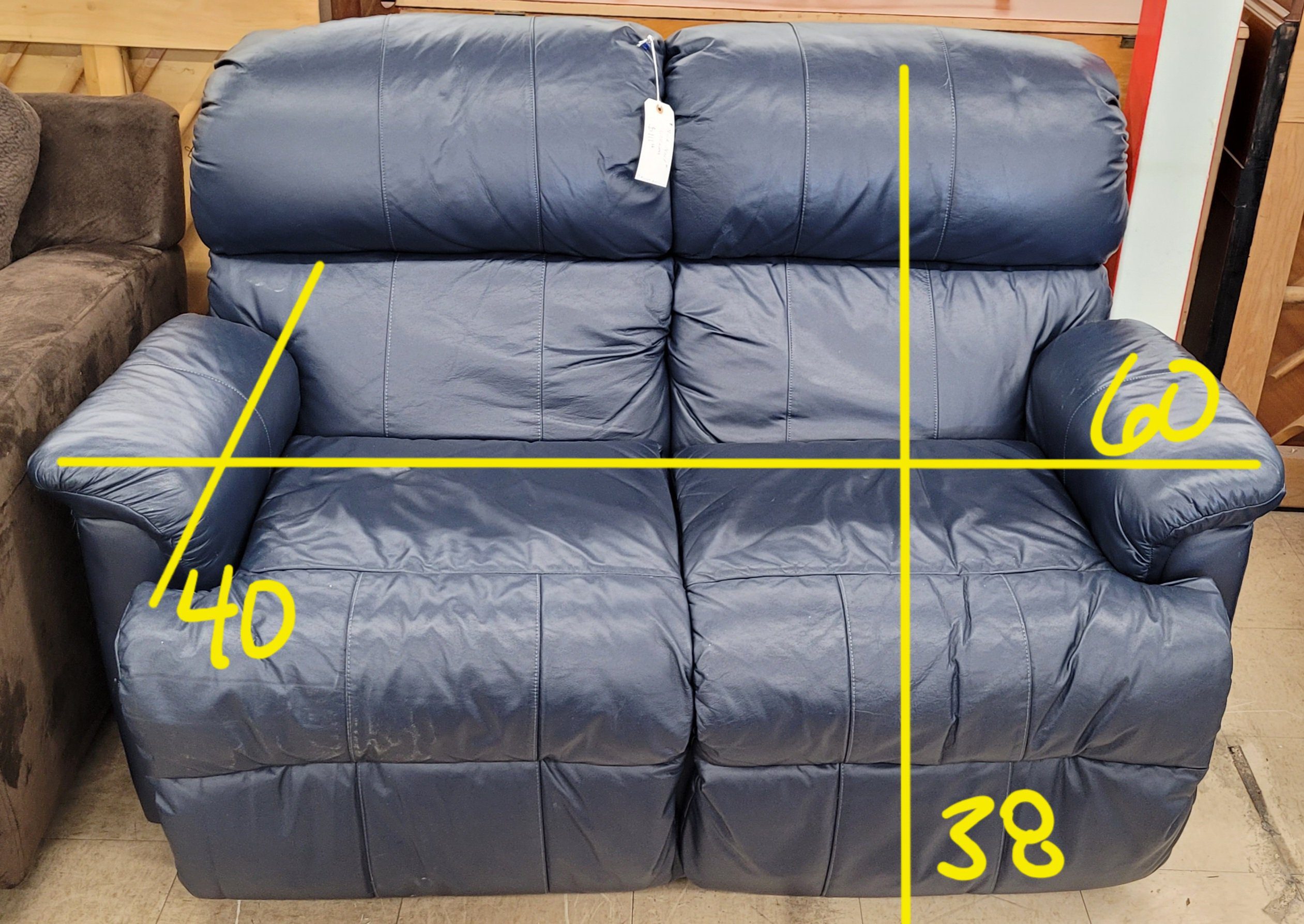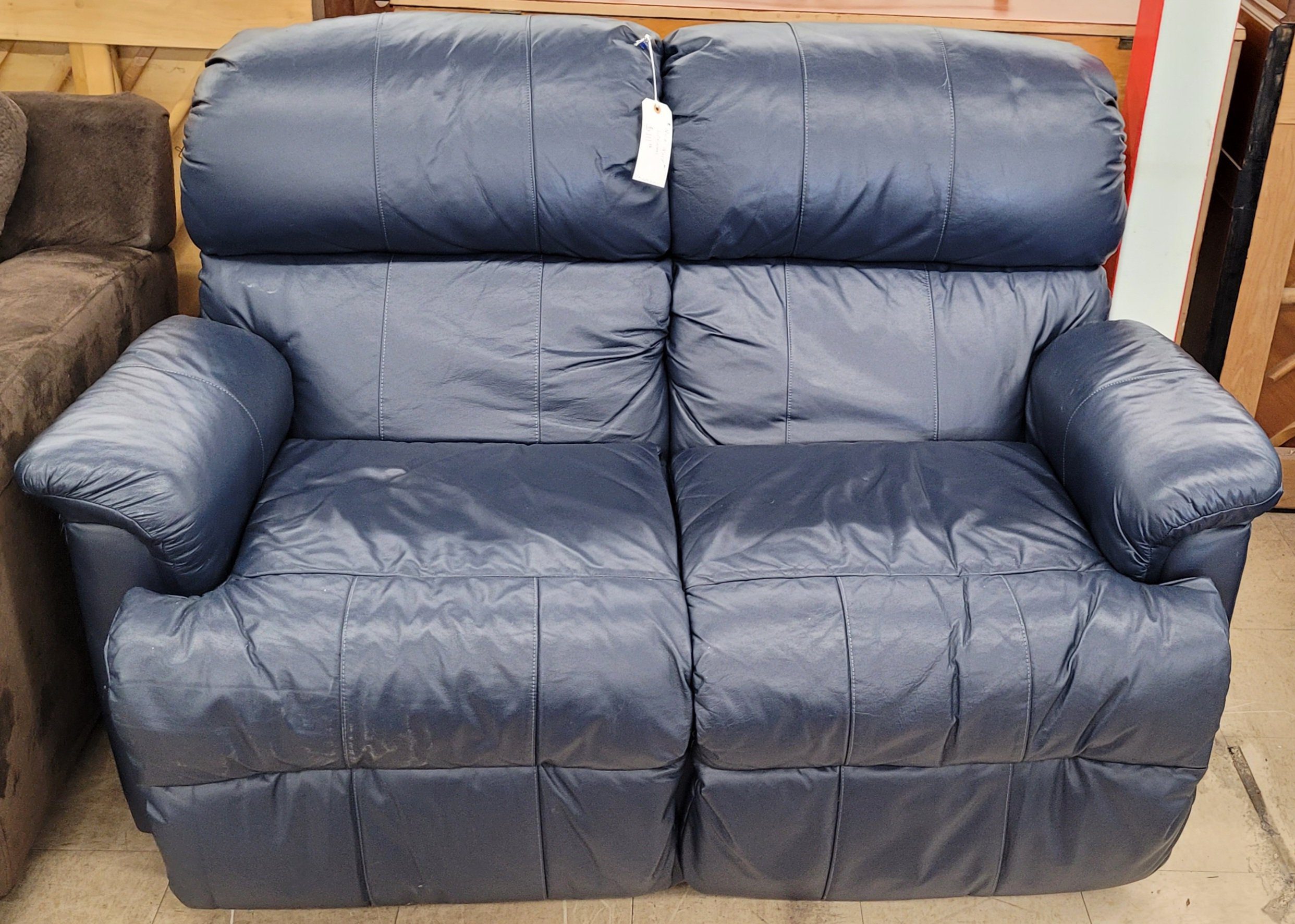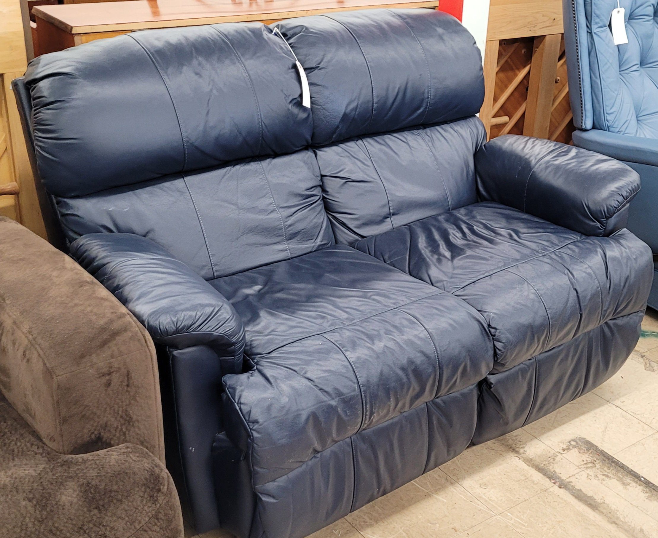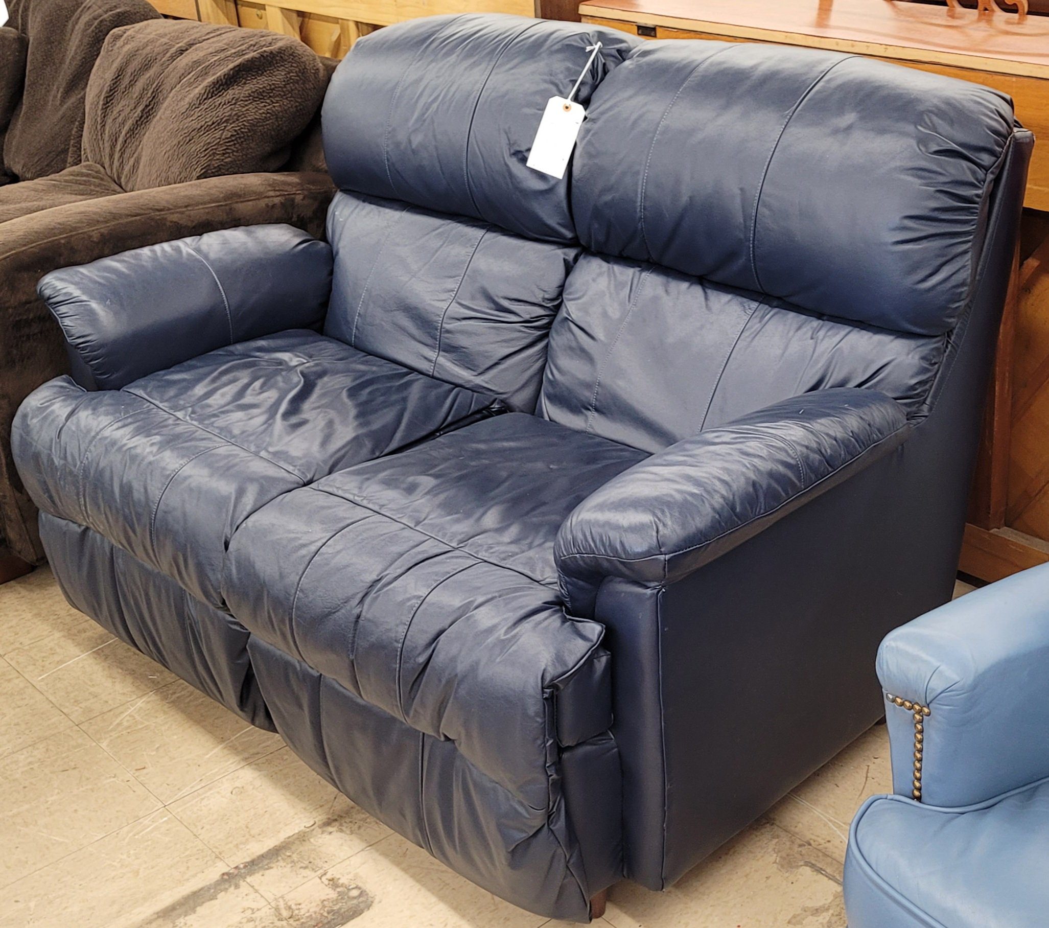 Deep Blue Leather Loveseat