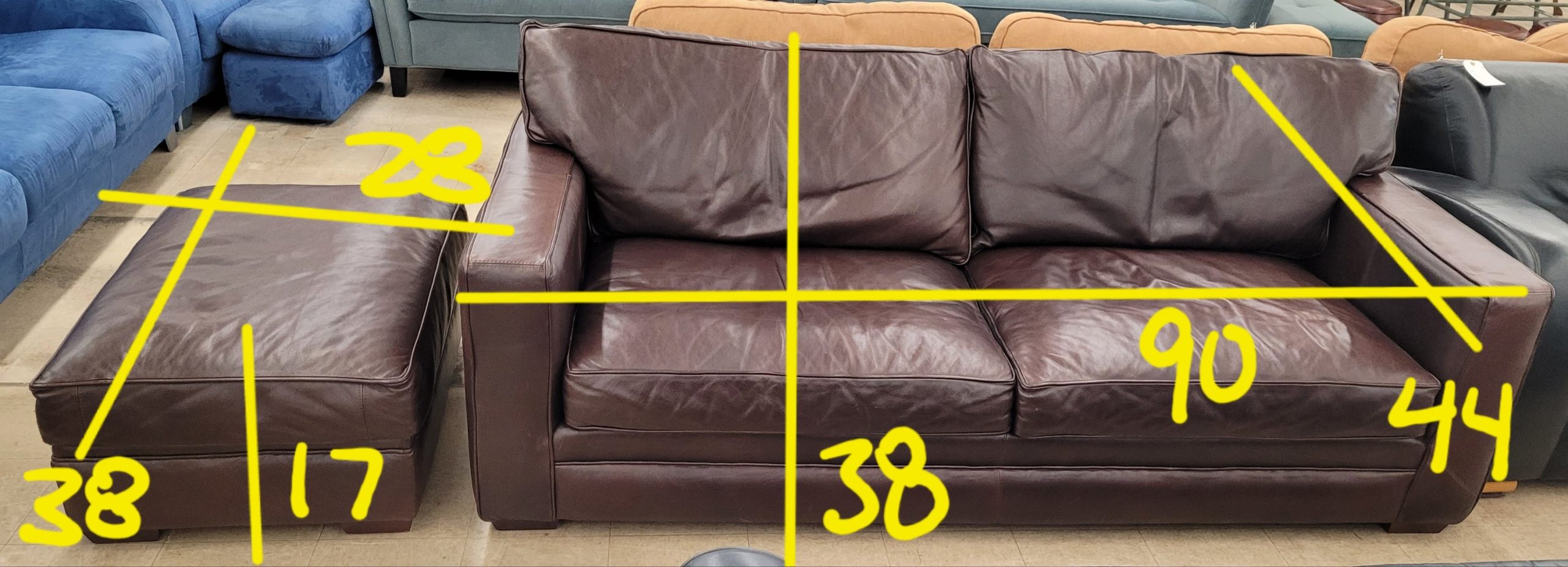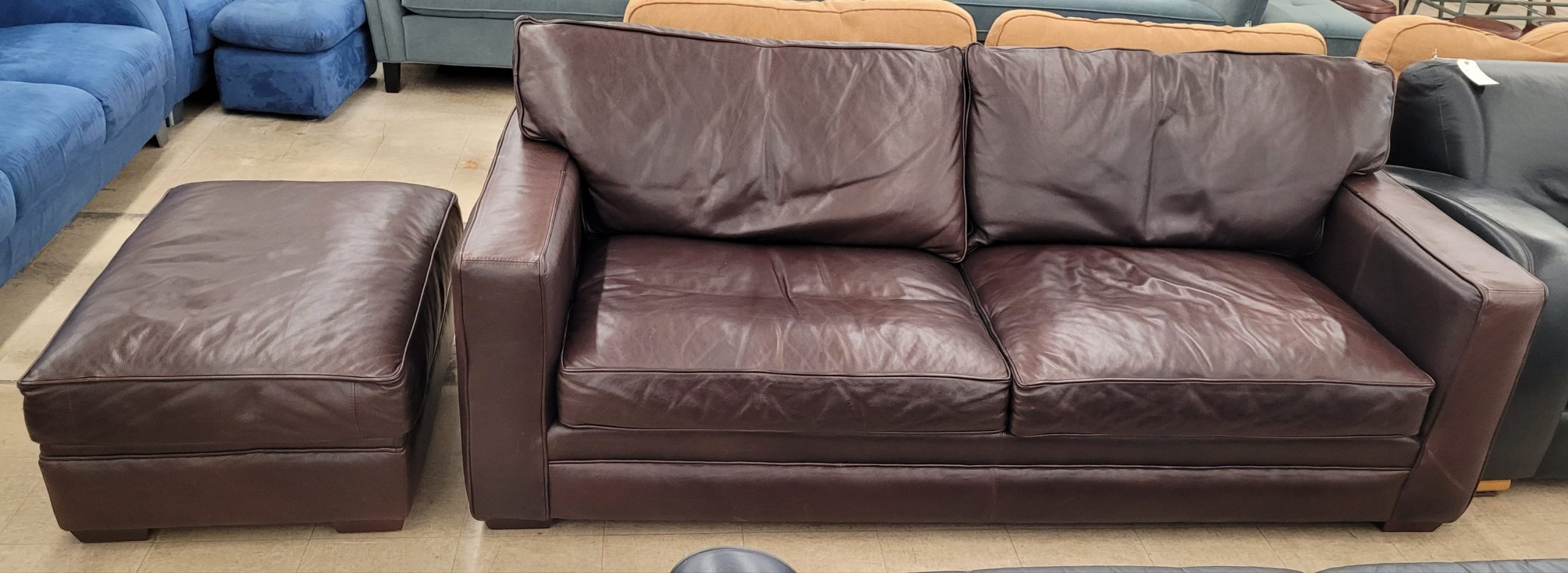 Very nice leather sofa and ottoman for sale. In like new condition these cushions are down filled and extremely comfortable. This fine piece of furniture by Homestead Leather will not be around for long. From a clean non-smoking home.