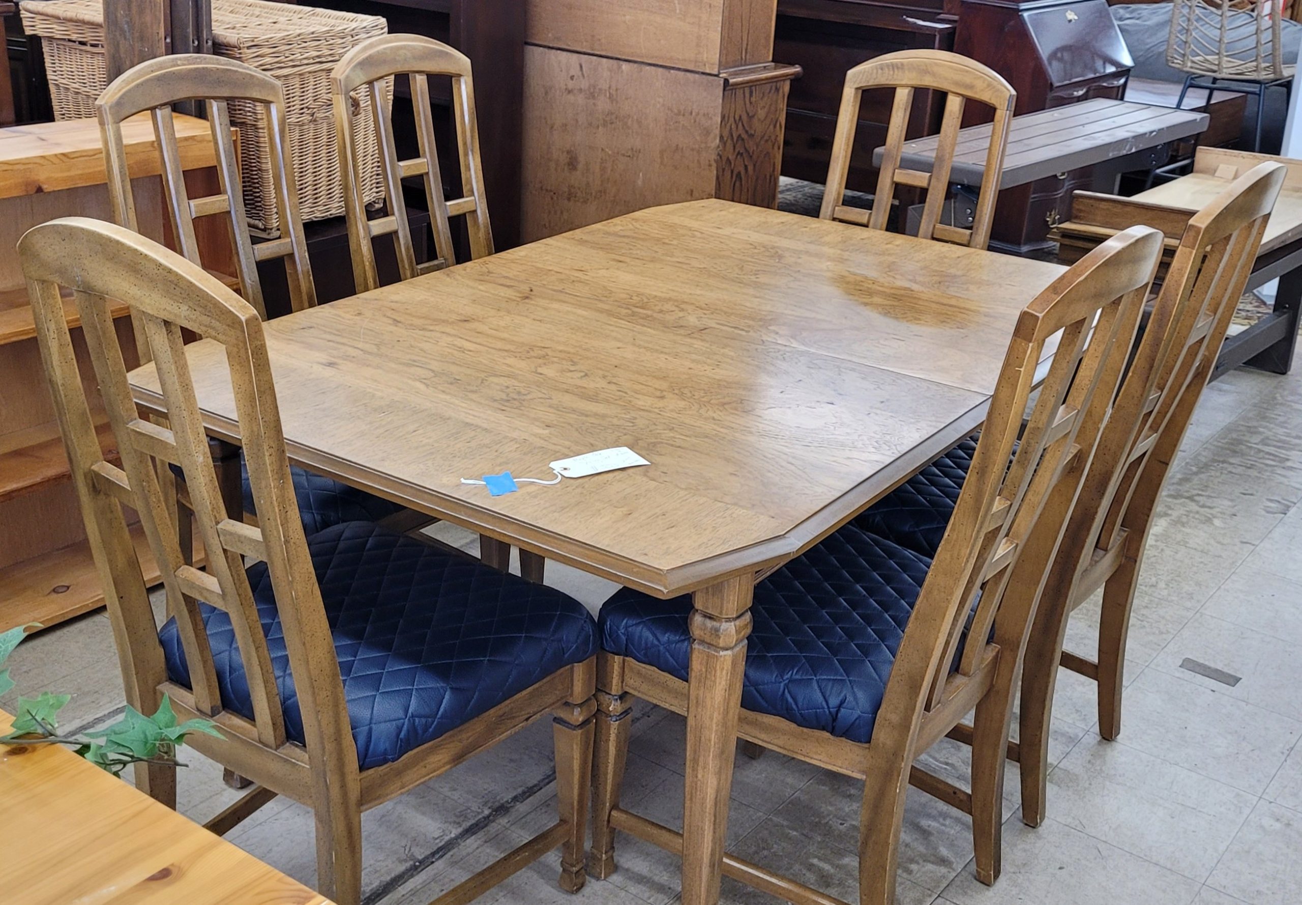 Nice dining set for sale. Set includes table, 6 chairs and 2 leaves. In excellent condition, the chairs have recently been reupholstered and are in excellent condition. This set was clearly cared for by its previous owner and will be a great addition to your home. From a clean non-smoking home.