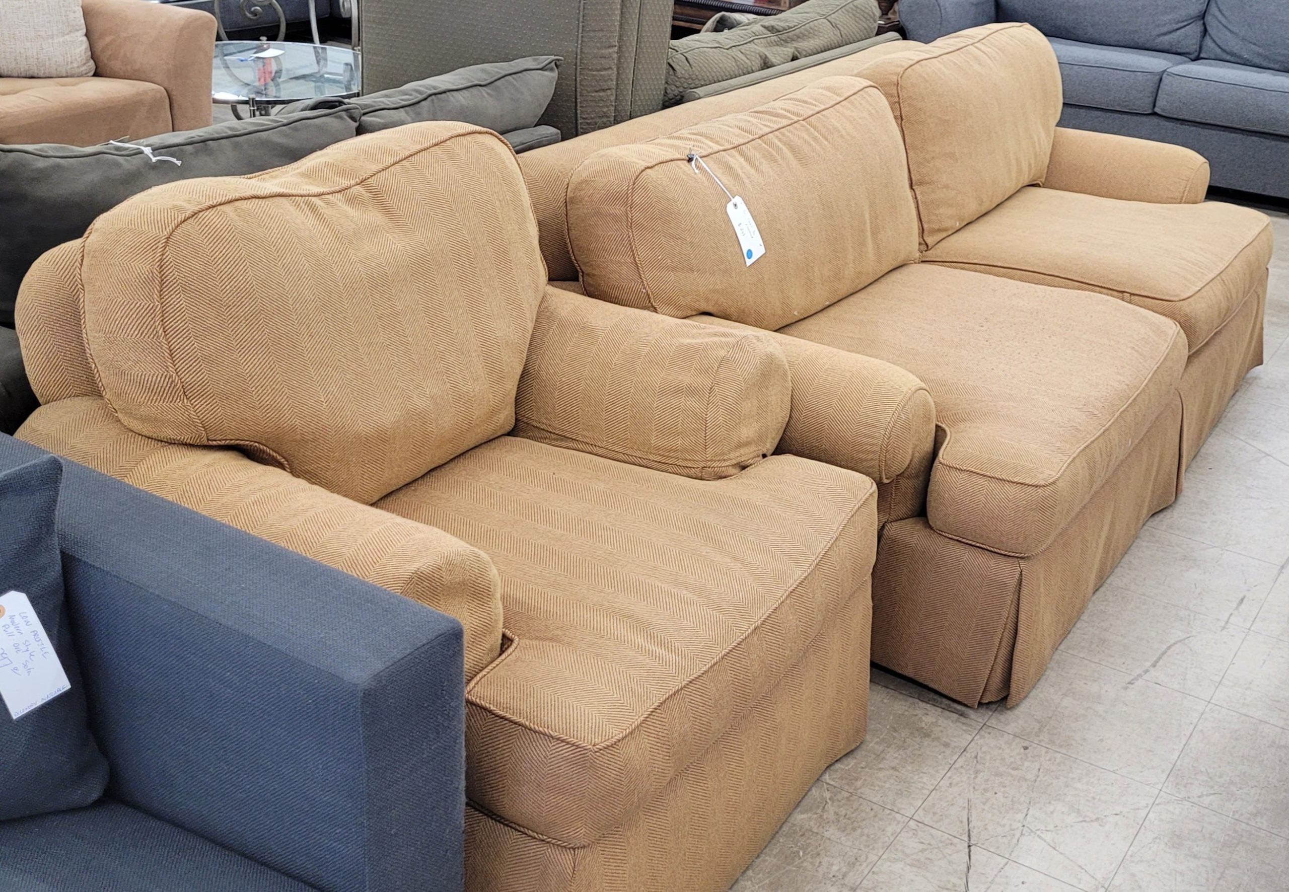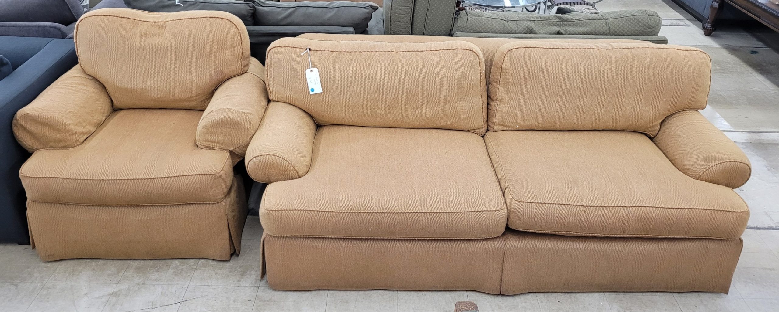 Nice couch and chair for sale. In good used condition, both of these pieces are filled with down which makes them extra comfy. Lots of life to give in the cushions, and overall these are good pieces to have. The couch is nice and long so you can lay down and they’re from a clean non-smoking home.