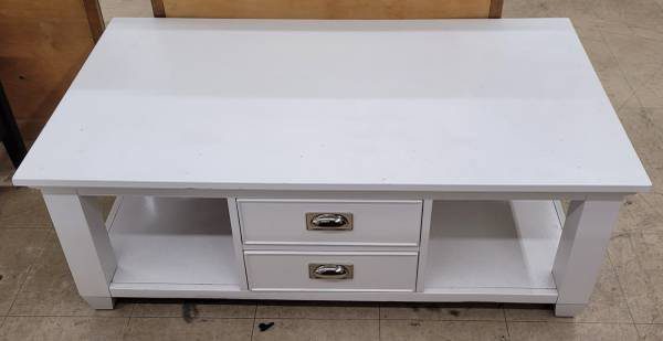 Nice coffee and end table set for sale. In good condition, both table have shelving and 2 drawers for storage. Beautiful weathered white, this set will match any color scheme. From a clean non-smoking home.